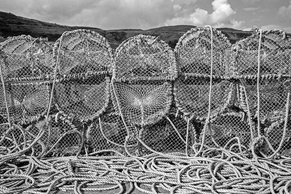 Image 1 / 16   Lobster nets, Uig ferry terminal to Harris & Lewis, Isle of Skye, Scotland, United Kingdom